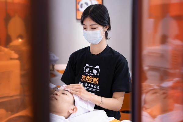 瞄准这一趋势,洗脸熊专门设计适配男性肤质的洗脸项目,从清洁力度到护理重点都贴合男性需求,成功吸引大量男性消费者进店体验,成为男生女生都喜爱的洗脸品牌,真正实现“让护肤不分性别”。