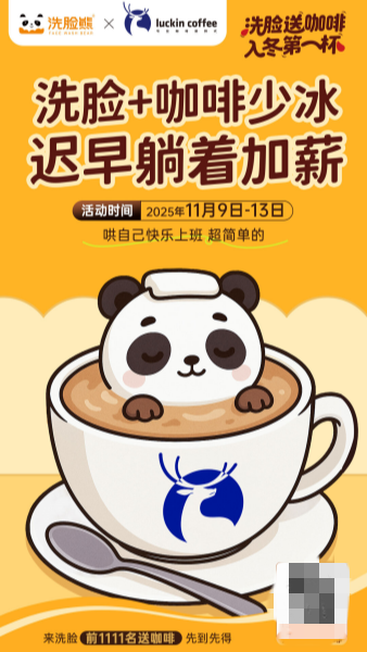 双十一期间,洗脸熊在全国门店推出“入冬第一杯瑞幸咖啡”活动。顾客到店满足消费条件即可获赠瑞幸热咖啡兑换券,精准触达职场人群的“提神+清洁”双重需求,不少人表示会再去门店复购,客户与品牌的粘性可见不断深化。